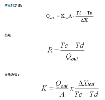 该方法采用的是通常所说的稳态热流法,其测试原理是将一定厚度的样品置于上下两 个平板间,对样品施加一定的热流量和压力,使用热流传感器测量通过样品的热流、测试样品的厚度、热板/冷板间的温度梯度,然后得出不同厚度下对应的热阻数据作直线拟合得出 样品的导热系数。 这种方法的优点是: